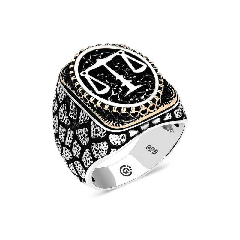Gümüş Adalet Terazisi Oval Erkek Yüzük