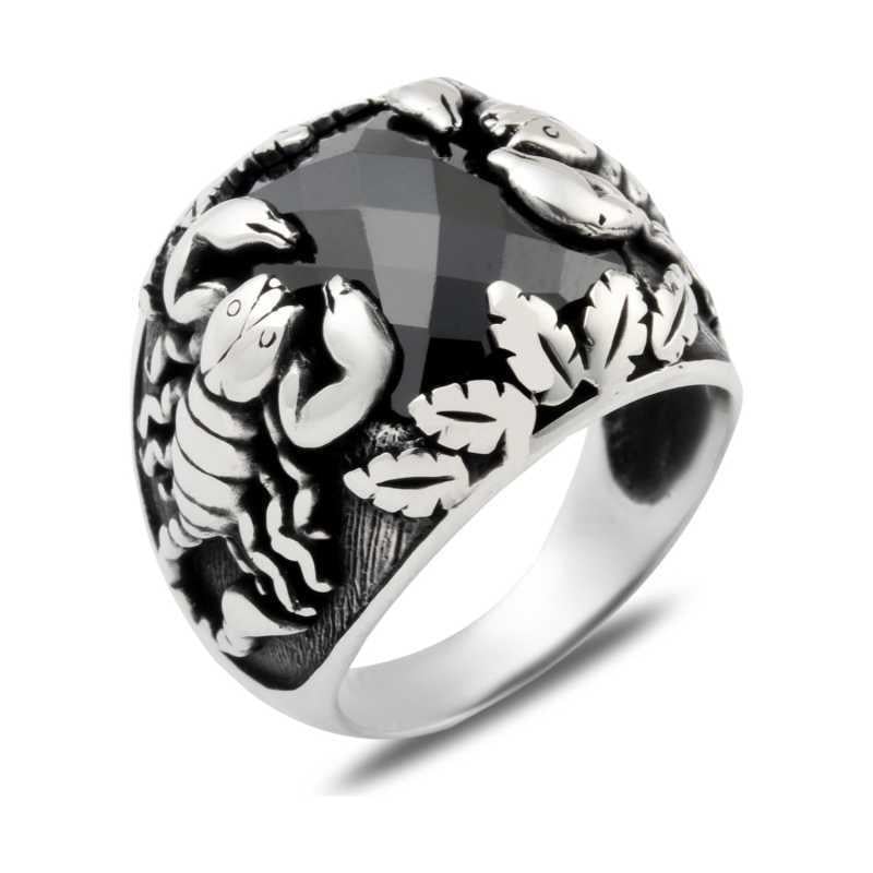Güçlü bedeni ve ölümcül iğnesi ile bilinen akrep gelecek tehlikeleri veya zor dönüşümleri haber verir. Burç simgesi olduğu için aksesuarlarda da çok tercih edilir. İçinde barındırdığı zehrinden dolayı güç sembolü, aynı zamanda inatçı ve pes etmez özelliği ile bilinir. Severek kullanabileceğiniz ve sevdiklerinize armağan edebileceğiniz bir yüzüktür. 925 ayar gümüş üzerine oksit kaplama yapılmıştır. Gümüş akrep erkek yüzük ve diğer ürünlerimizin tamamı el emeği ile üretilmiştir. Gümüş ve değerli taşlar nedeniyle belirtilen ortalama ürün ağırlığında ± %10 sapma olabilmektedir.