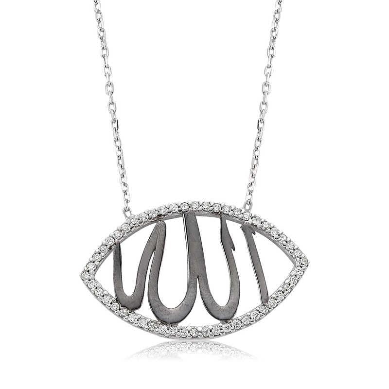 İnancını üzerinde taşımak isteyenlerin günlük hayatta yanlarından ayırmayacakları özel bir aksesuar olan bu şık kolye modeli manevi duyguları ifade etmenin anlamlı bir yolu olacaktır. Bu harika tasarım kolye size ve sevdiklerinize huzur verecek. Üzerinde arapça Allah yazılı bayan kolye 925 ayar gümüşten imal edilmiştir. Gümüş üzerine rodyum kaplama yapılmıştır. Rodyum kaplama yapılan gümüş bayan kolye modelleri parlaklığını uzun süre muhafaza eder ve oksitlenmesi gecikir. Kolye üzerinde bulunan taşlar zirkondur. Gümüş olan zincir boyu ortalama 45 cm\"dir. Tüm gümüş bayan kolye modellerinde olduğu gibi gümüş Allah yazılı bayan kolye de el emeği ile üretilmiştir. Gümüş ve değerli taşlar nedeniyle belirtilen ürün ağırlığında ± %10 sapma olabilmektedir.