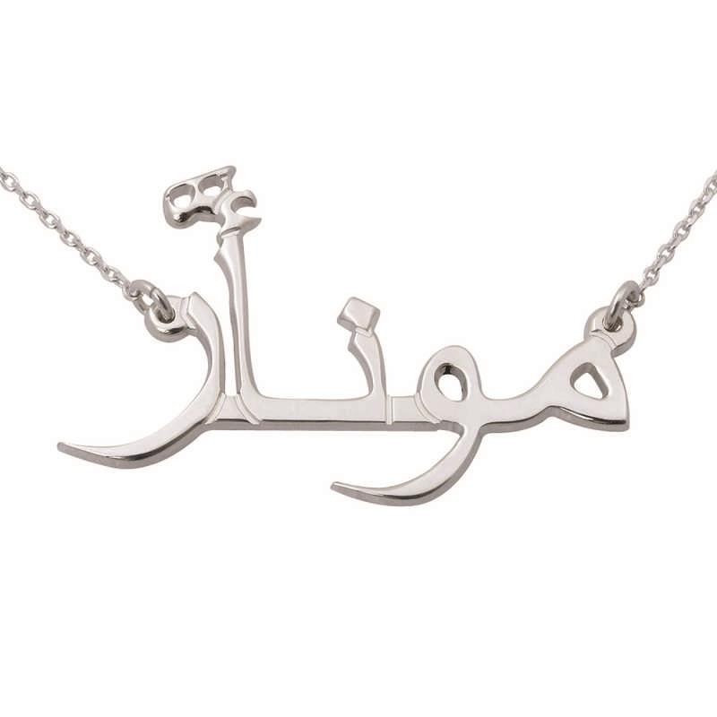 925 ayar gümüşten imal edilmiştir. Gümüş üzerine rodyum kaplama yapılmıştır. Rodyum kaplama yapılan kişiye özel isimli gümüş kolye modelleri parlaklığını uzun süre muhafaza eder, oksitlenmesi gecikir. Zincir uzunluğu ortalama 45 cm\" dir. Ürün hediye kutusunda gönderilecektir. Ürünlerimizin tamamında olduğu gibi arapça isimli kolye modeli de el emeği ile üretilmiştir ve değerli taşlar nedeniyle belirtilen ortalama ürün ağırlığında ± %10 sapma olabilmektedir.