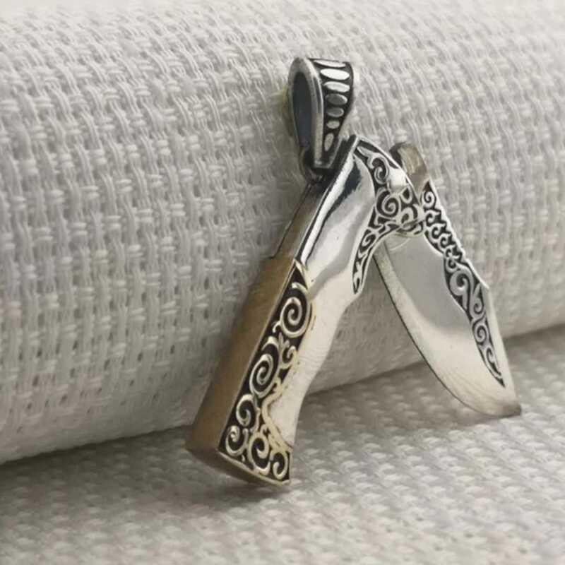 Av bıçağı, avcılar için özel olarak tasarlanmış keskin ve dayanıklı bir bıçaktır. Avcılıkta en önemli ekipmanlardan biri de av bıçağıdır. Av bıçağı, avcının en yakın dostudur. Av bıçağı, av hayvanının derisini yüzmek, etini kesmek, kemiklerini ayırmak, ateş yakmak, ip kesmek gibi pek çok işe yarar Bu kolye ucu 925 ayar gümüşten imal edilmiştir. Gümüş üzerine oksit kaplama yapılmıştır. Oksit kaplama yapılan gümüş kolye ucu modelleri parlaklığını uzun süre muhafaza eder ve oksitlenmesi gecikir. Bu avcı bıçağı kolye ucu de diğer gümüş kolye ucu modellerinde olduğu gibi el emeği ile üretilmiştir. Gümüş ve değerli taşlar nedeniyle belirtilen ürün ağırlığında ± %10 sapma olabilmektedir.