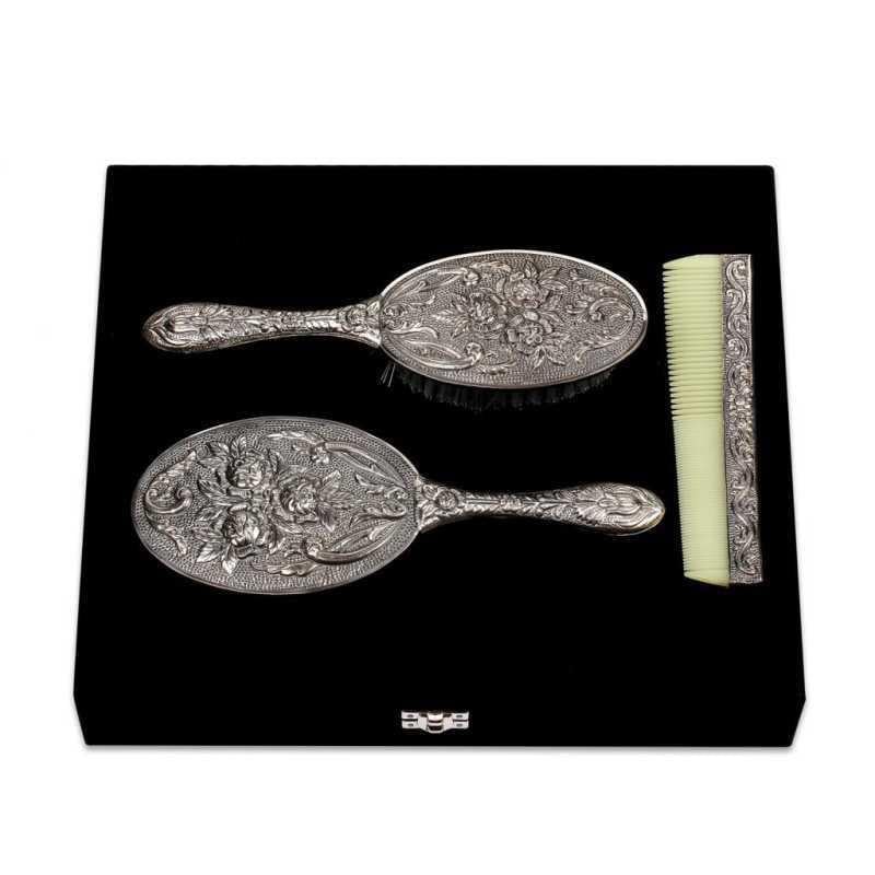 Gümüş Ayna Tarak Fırça Takımı - 3 Parça