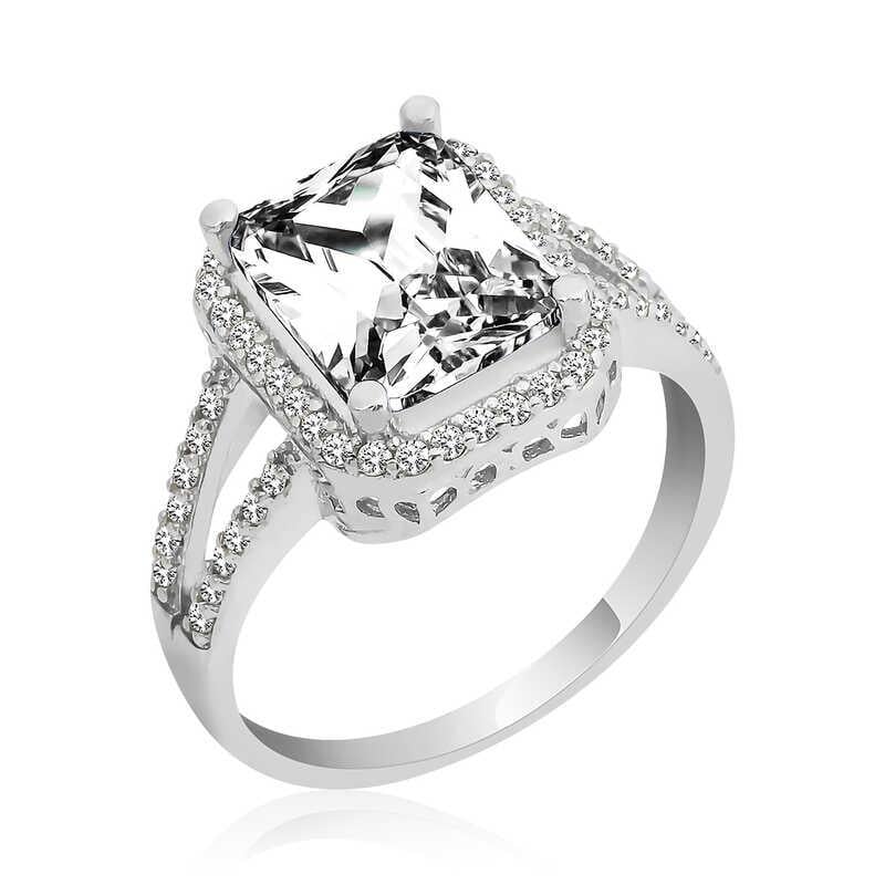 Gümüş Beyaz Baget Kare Bayan Yüzük