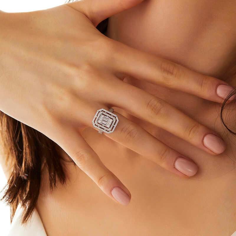Günlük hayatta rahatlıkla kullanabileceğiniz bu özel tasarım baget kesim yüzük 925 ayar gümüşten imal edilmiştir. Gümüş üzerine rodyum kaplama yapılmıştır. Rodyum kaplama yapılan kadın gümüş yüzük modelleri parlaklığını uzun süre muhafaza eder, oksitlenmesi gecikir. Yüzük üzerinde bulunan taşlar zirkondur. Sevdiğinize doğum günü, sevgililer günü ve özel günlerde tercih edebileceğiniz mükemmel bir hediye seçeneğidir. Gümüş kadın yüzük modellerimizin tamamında olduğu gibi bu baget kesim kadın yüzük de tamamen el emeği ile üretilmiştir. Gümüş ve değerli taşlar nedeniyle belirtilen ortalama ürün ağırlığında ± %10 sapma olabilmektedir.