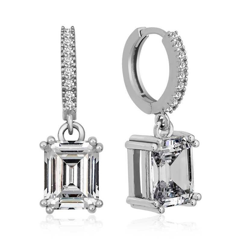 Gümüş Baget Taşlı Halka Küpe