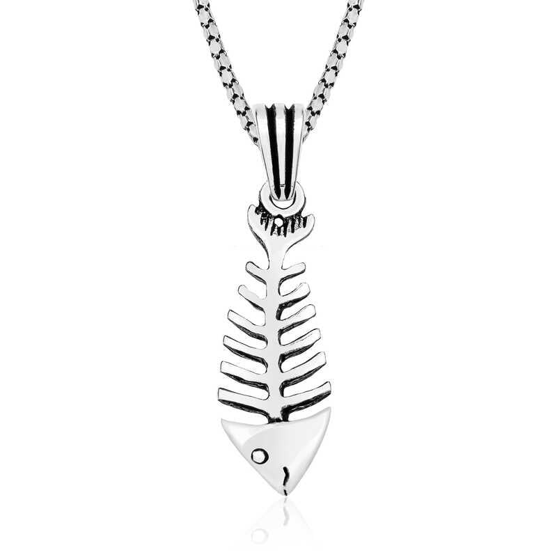 Balık kültürlerin bir çoğunda şansı ve bereketi sembolize eder. Ayrıca balık doğa hayatına ait birçok anlamı bünyesinde barındırır. Akıntıya karşı yüzmeleri, fazla sayıda doğurmaları ve özgürce hareket etmeleri... Bunun gibi pek çok mana yüklü olan balık sembolünü, şık tasarımıyla karşımızda... Bu şık balık iskeleti kolyeyi; doğum günü hediyesi, sevgililer günü hediyesi olarak özel günlerde tercih edilebilecek mükemmel bir seçenektir. Kolye; 925 ayar gümüşten imal edilmiştir. Oksit kaplama yapılan kolyeler parlaklığını uzun süre muhafaza eder, oksitlenmeyi geciktirir. Zincir boyu ortalama 55 cm\"dir. Kolyelerimizin tamamı el emeği ile üretilmiştir. Gümüş ve değerli taşlar nedeniyle ürün ağırlığında ± %10 sapma olabilmektedir.