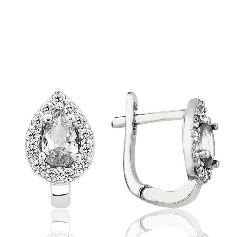 Gümüş Beyaz Taşlı Damla J Kadın Küpe