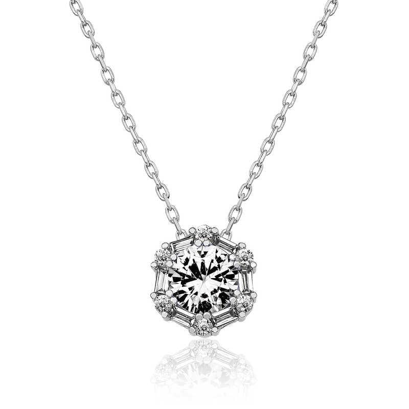 Gümüş Buz Beyazı Baget Taşlı Bayan Kolye
