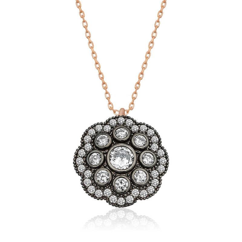 Gümüş Elmas Montür Çiçek Bayan Kolye
