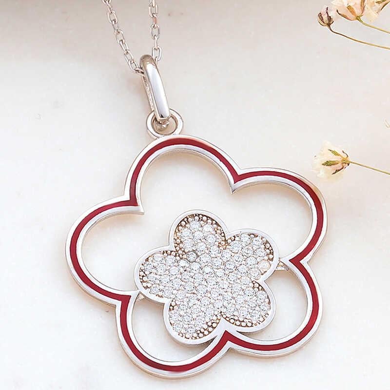 Özel günlerde kadınların tercihleri arasında ilk sıralarda yer alan kolyeler pek çok kadının kurtarıcısıdır. Spor ve klasik her kıyafetle kombinleyebileceğiniz çiçek desenli kolye, çok uygun fiyatla karşınızda. Zarif çiçek motifi üzerine işlenen küçük beyaz zirkon taşlarla desteklenmiş bu modelle şıklığınızı tamamlayabilirsiniz. Bu kolye modeli 925 ayar gümüşten imal edilmiştir. Gümüş üzerine rodyum kaplama yapılmıştır. Rodyum kaplama yapılan gümüş kolye modelleri parlaklığını uzun süre muhafaza eder ve oksitlenmesi gecikir. Tüm gümüş kolyelerde olduğu gibi gümüş çiçek desenli kadın kolye modeli de tamamen el emeği ile üretilmiştir. Gümüş ve değerli taşlar nedeniyle belirtilen ortalama ürün ağırlığında ± %10 sapma olabilmektedir.