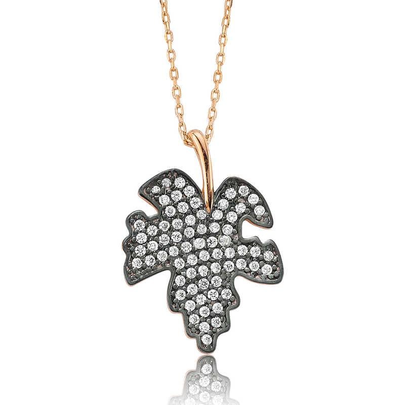 Gençlere ve kendisini genç hisseden tüm bayanlara özel; rose gümüş ve zirkon taşın ışıltısı ile yaşam enerjinizi etrafınıza yansıtın. Sizin olduğu kadar sevdiklerinizin de keyifle takacağı bu kolye, sevginizin çınar ağacı gibi uzun ömürlü olduğunu ifade edebileceğiniz güzel hediyelerden biri olacaktır. Bu çınar yaprağı bayan kolye 925 ayar gümüşten imal edilmiştir. Gümüş üzerine rose altın kaplama yapılmıştır. Rose altın kaplama yapılan gümüş bayan kolye modelleri parlaklığını uzun süre muhafaza eder ve oksitlenmesi gecikir. Kolye üzerinde bulunan taşlar zirkondur. Gümüş olan zincir boyu ortalama 45 cm\"dir. Tüm gümüş bayan kolye modellerinde olduğu gibi bu gümüş çınar bayağı bayan kolye modelinde de el emeği ile üretilmiştir. Gümüş ve değerli taşlar nedeniyle belirtilen ürün ağırlığında ± %10 sapma olabilmektedir.