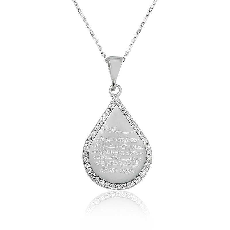 Gümüş Damla Ayetel Kürsi Bayan Kolye