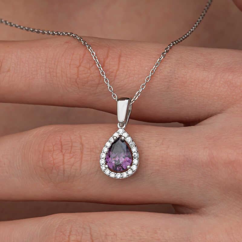 Gümüş Damla Mor Taşlı Kadın Kolye