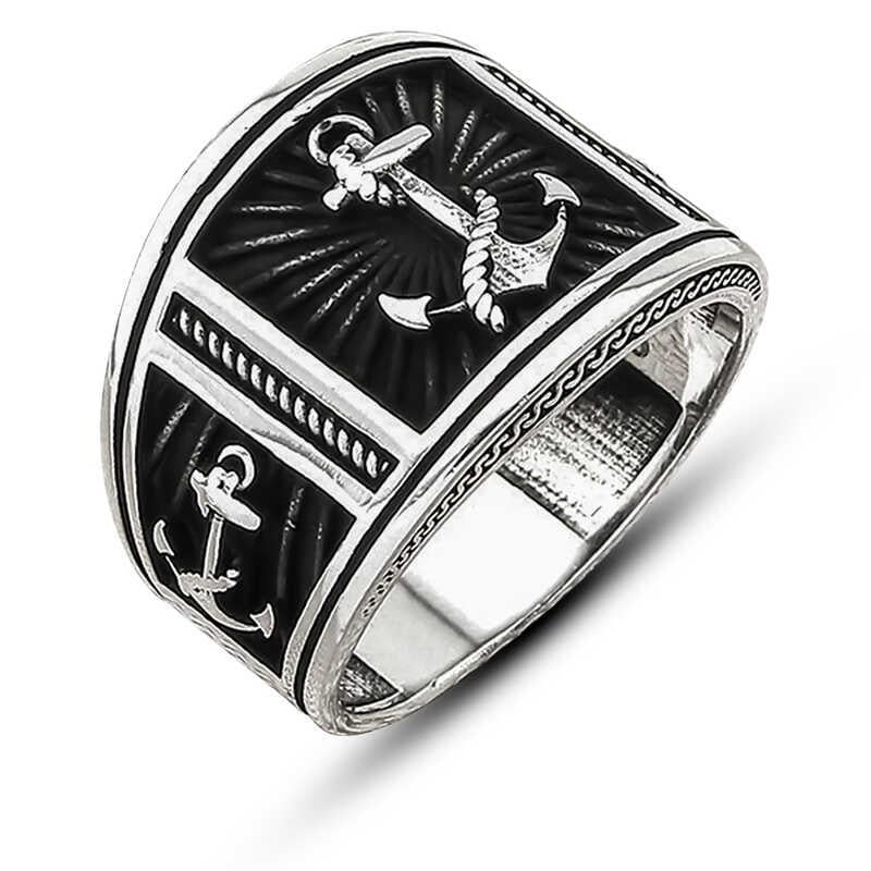 Çapa denizde gemilerin dalga ve akıntıya karşı sürüklenmesini engelleyerek suya bırakılan çengel uçlu ağır demir araçtır. Denizcilik açısından oldukça önemlidir. Taşıdığı hayati önemle, denizciler açısından oldukça önemli bir yere de sahiptir. Denizcilik ile uğraşmış ve deniz sevdasını yüreğinde barındıran kişilerin oldukça sevdiği bir modeldir. Ayrıca bazı inanışlara göre kalbi kırılmış ve umudunu yitirmiş kişiler kendilerini yeni bir hayata başlatmak için çapanın ucuna yitirdikleri anlamları da simgelerler. Bu uygulama kendilerine yeni hayatlarında güç verir ve yeni hayatlarına daha iyi başlamaları inancını yansıtır. Bu derin anlamdan esinlenerek oluşturulan çapa erkek yüzük; kendinize yada sevdiklerinize doğum gününde, babalar gününde yada özel günlerde hediye edebilirsiniz. Bu şık erkek yüzük 925 ayar gümüşten imal edilmiştir. Gümüş üzerine oksit kaplama yapılmıştır. Oksit kaplama yapılan yüzükler parlaklığını uzun süre muhafaza eder. Tüm erkek yüzüklerde olduğu gibi gümüş deniz çapası armalı erkek yüzük de el emeği ile üretilmiştir. Gümüş ve değerli taşlar nedeniyle ürün ağırlığında ± %10 sapma olabilmektedir.