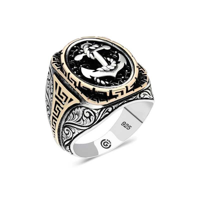 Gümüş Deniz Çapası Oval Erkek Yüzük (MR11002869-28)