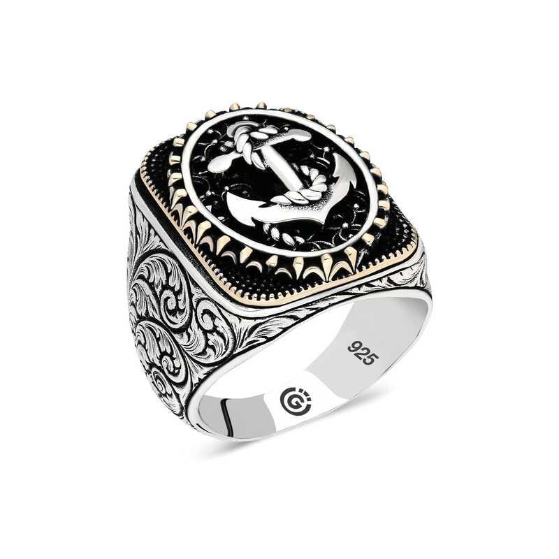 Gümüş üzerindeki deniz çapası oval erkek yüzük modeli günün her anında kullanabileceğiniz şık bir aksesuardır. Bu yüzüğü; kendinize ya da sevdiklerinize doğum gününde, babalar gününde ya da özel günlerde hediye edebilirsiniz. Deniz çapası erkek yüzük modeli 925 ayar gümüşten imal edilmiştir. Gümüş üzerine oksit kaplama yapılmıştır. Oksit kaplama yapılan gümüş erkek yüzük modelleri parlaklığını uzun süre muhafaza eder. Tüm erkek yüzüklerde olduğu gibi gümüş deniz çapası erkek yüzük modeli de el emeği ile üretilmiştir. Gümüş ve değerli taşlar nedeniyle belirtilen ortalama ürün ağırlığında ± %10 sapma olabilmektedir.​