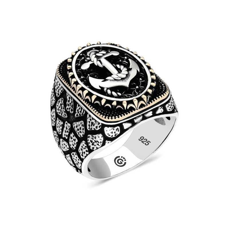 Gümüş üzerindeki deniz çapası oval erkek yüzük modeli günün her anında kullanabileceğiniz şık bir aksesuardır. Bu yüzüğü; kendinize ya da sevdiklerinize doğum gününde, babalar gününde ya da özel günlerde hediye edebilirsiniz. Deniz çapası erkek yüzük modeli 925 ayar gümüşten imal edilmiştir. Gümüş üzerine oksit kaplama yapılmıştır. Oksit kaplama yapılan gümüş erkek yüzük modelleri parlaklığını uzun süre muhafaza eder. Tüm erkek yüzüklerde olduğu gibi gümüş deniz çapası erkek yüzük modeli de el emeği ile üretilmiştir. Gümüş ve değerli taşlar nedeniyle belirtilen ortalama ürün ağırlığında ± %10 sapma olabilmektedir.​