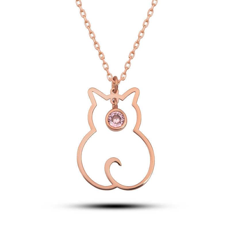 Her bir doğum taşı, belli bir ayla özdeşleşmiştir. Opal ekim ayı burç taşıdır. Kişinin ruh halini yansıtan duygusal bir taştır. Beyaz, kırmızı, mavi, yeşil, sarı, turuncu, siyah gibi pek çok rengi içinde barındırır. Onun parlak olmayan rengi, sevgiyi temsil etmektedir. Ayrıca sevgi, sadakat, barış ile ilişkilidir. Özgürlük, kozmik bilinç, mistik vizyon geliştirme konularında etkilidir. Enfeksiyon ve ateş tedavisinde etkilidir. Evlerimizin sevimli neşe kaynağı kediler, temiz olmalarının yanı sıra masumiyetin simgesidir. Asil ve mantıklı bir kişiliğe, mükemmel sezgilere ve akılcı bir duyarlılığa sahiptirler. Özel günlerin en tercih edilen hediye seçeneklerinden olan gümüş takılar, sevdiklerini mutlu etmek ve onlara her an yanlarında taşıyabilecekleri bir hediye vermek isteyenler için tasarlandı. Masumiyetin simgesi olan kedi figürlü gümüş kolye modelini kız kardeşinize, sevgilinize ya da arkadaşlarınıza armağan edebilirsiniz. Opal taşlı kedi kadın kolye modeli 925 ayar gümüşten imal edilmiştir. Gümüş üzerine rose kaplama yapılmıştır. Rose kaplama yapılan gümüş kedi kolye modelleri parlaklığını uzun süre muhafaza eder ve oksitlenmesi gecikir. Kolye üzerinde bulunan tüm taş opaldir. Gümüş olan zincir boyu ortalama 45 cm\"dir. Gümüş kadın kedi kolye diğer tüm gümüş kadın kolye modellerinde olduğu gibi el emeği ile üretilmiştir. Gümüş ve değerli taşlar nedeniyle belirtilen ortalama ürün ağırlığında ± %10 sapma olabilmektedir.