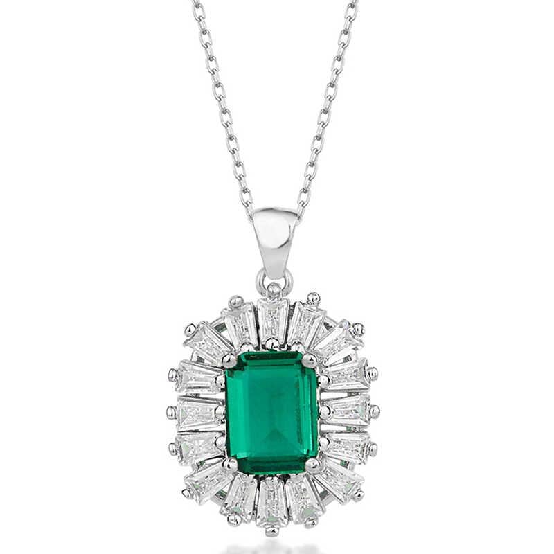 Gümüş Elmas Montür Zümrüt Taşlı Kadın Kolye
