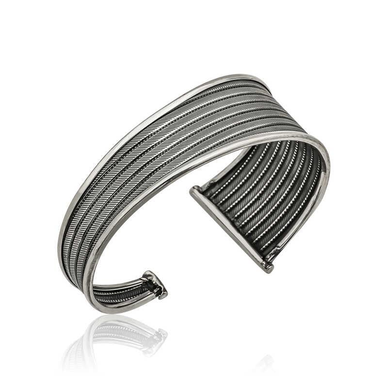 Şık ve fantezi görünümü seven kadınlar için ideal bir seçenektir. Koleksiyonlarda; gösteriş ve şıklığın peşinde olan kadınlar için tamamen el işçiliğiyşe yapılmış bu bilezik her zevke ve konsepte uygun modeli ile sizleri bekliyor. Bu şık modeli; doğum günü hediyesi, sevgililer günü hediyesi olarak özel günlerde tercih edebilirsiniz. Eskitme desenli bayan bilezik modeli 925 ayar gümüşten imal edilmiştir. Gümüş üzerine rodyum kaplama yapılmıştır. Rodyum kaplama yapılan gümüş bayan bilezik modelleri parlaklığını uzun süre muhafaza eder, oksitlenmesi gecikir. Tüm gümüş bayan bilezikler de olduğu gibi bu gümüş eskitme desenli bayan bilezik modeli de el emeği ile üretilmiştir. Gümüş ve değerli taşlar nedeniyle belirtilen ortalama ürün ağırlığında ± %10 sapma olabilmektedir.