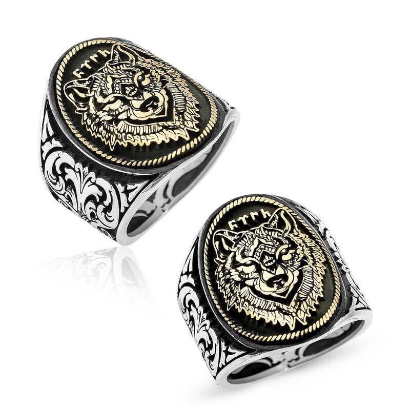 Gümüş Göktürkçe Türk Yazılı Kurt Kafası Erkek Yüzük