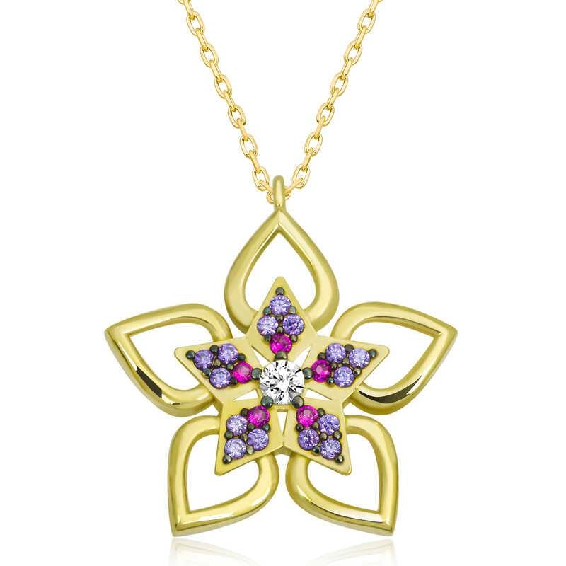 Sevdiklerinize duygularınızı ifade etmenin en özel ve zarif yolu O’na gönderebileceğiniz şık, rengarenk ve mis kokulu çiçeklerdir. Özel günlerde verilecek hediyeler arasında olan çiçek, bu kez farklı bir yorumla tasarlandı... Çiçek kolye sevgisini bir kez daha anlatmak isteyenleri, sen bir çiçeksin demek isteyenleri bekliyor. Bu özel tasarım, çiçek kadın kolye 925 ayar gümüşten imal edilmiştir. Gümüş üzerine gold kaplama yapılmıştır. Gold kaplama yapılan gümüş kadın kolye modelleri parlaklığını uzun süre muhafaza eder ve oksitlenmesi gecikir. Kolye üzerinde bulunan taşlar zirkondur. Tüm kadın gümüş kolye modellerinde olduğu gibi gümüş çiçek kadın kolye de el emeği ile üretilmiştir. Gümüş ve değerli taşlar nedeniyle belirtilen ürün ağırlığında ± %10 sapma olabilmektedir.