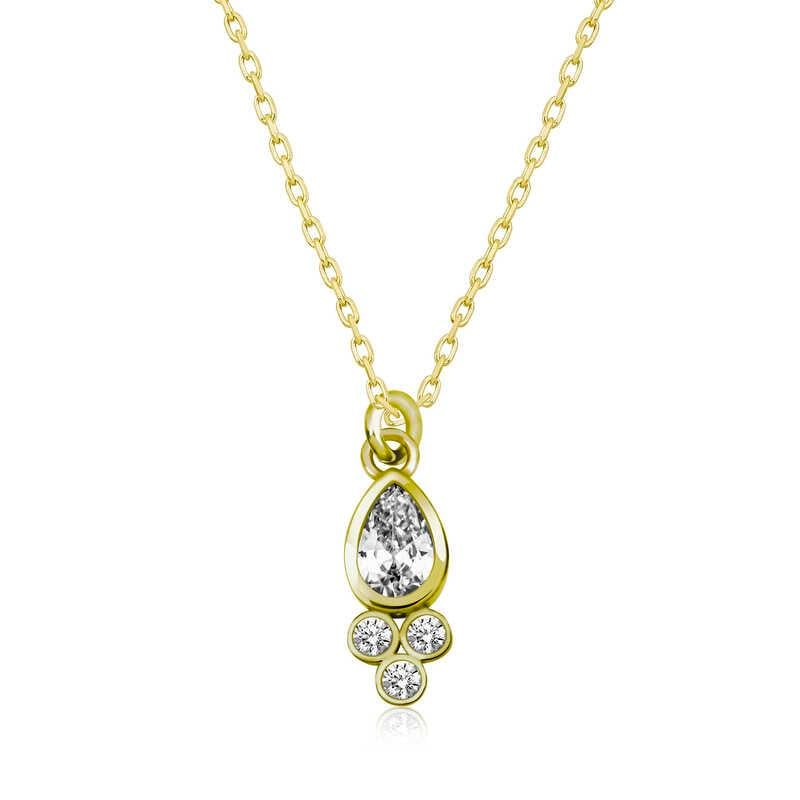 Gümüş Gold Çiğ Damlası Tek Taş Bayan Kolye