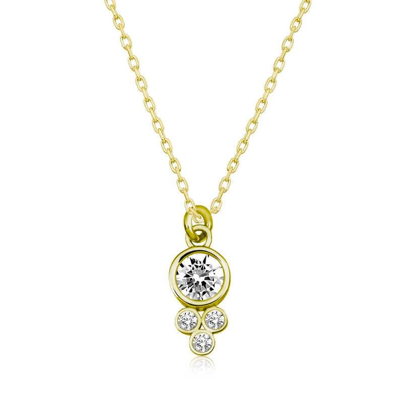 Gümüş Gold Çiğ Damlası Yuvarlak Tek Taş Bayan Kolye