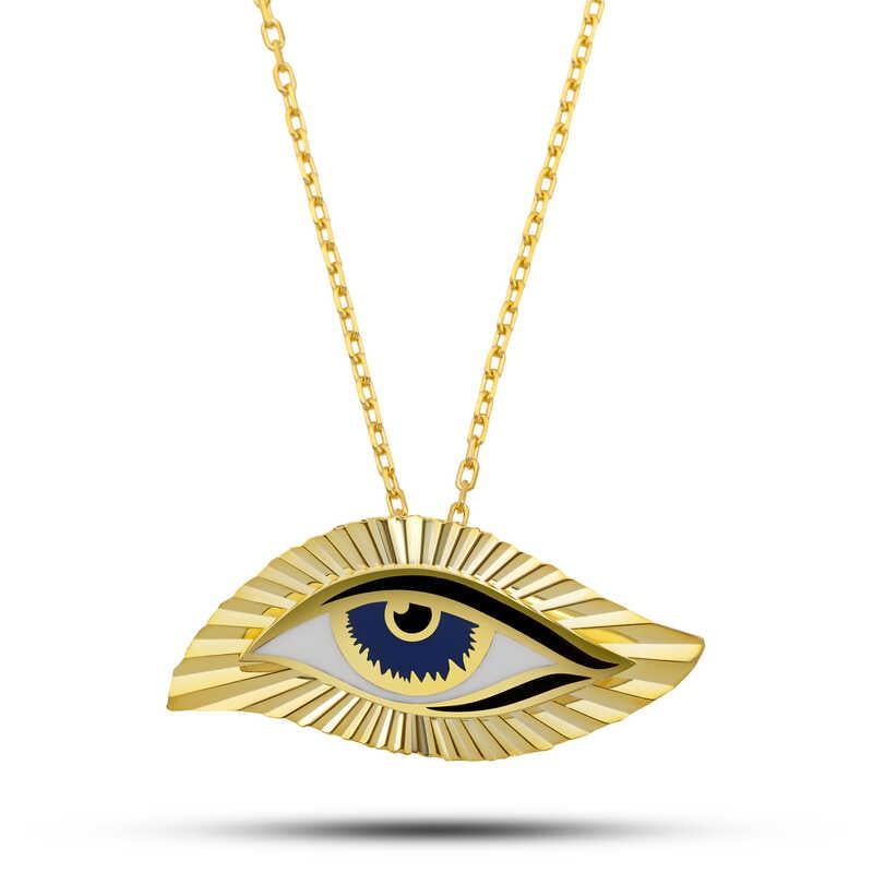 Geceyi temsil eden derin lacivert bakışlar,altın ışıltısıyla birleşti.Gümüş Gold Gecenin Gözü Kadın Kolye,şıklığı ve mistik enerjiyi bir araya getiren özel bir tasarımdır.Göz motifi,kadim kültürlerde koruyucu ve sezgisel güçlerin sembolü olarak bilinir.Bu kolye ise hem zarafeti hem de güçlü bir anlamı boynunuzda taşır.Gecenin derinliğinden ilham alan bu eşsiz kolye, hem günlük stilinize zarafet katar hem de sizi negatif enerjilerden korur.Sevdiklerinize anlamlı bir hediye ya da kendinize özel bir dokunuş arıyorsanız,Gecenin Gözü tam size göre.Gold kaplama yapılan gümüş ürünler parlaklığını uzun süre muhafaza eder,oksitlenmesi gecikir.Tüm gümüş kolyeler de olduğu gibi gold gecenin gözü kolye de tamamı el emeği ile üretilmiştir.Gümüş ve değerli taşlar nedeniyle belirtilen ortalama ürün ağırlığında ± %10 sapma olabilmektedir.