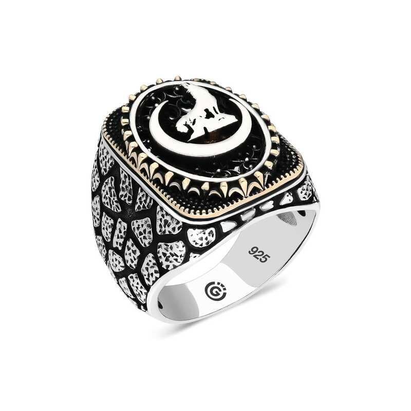 Gümüş Hilal Bozkurt Oval Erkek Yüzük (MR11002839-28)