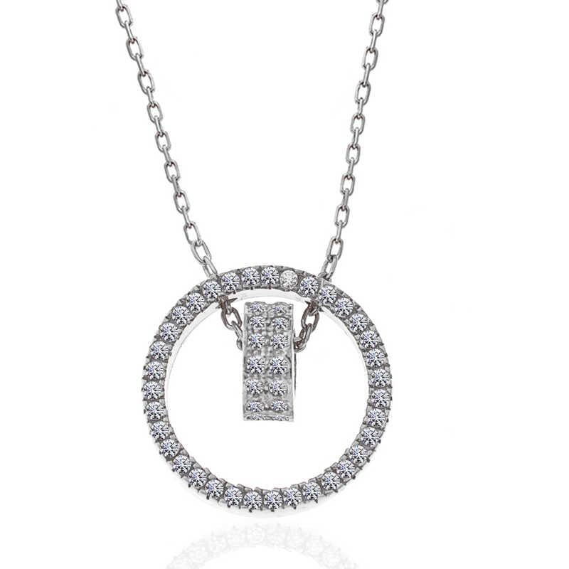 İçe içe geçmiş halka kadın kolye, sembollerden hoşlanmayıp sadelikten yana olanların tercih edebileceği oldukça şık bir tasarımdır. Gümüş iç içe geçmiş halka kadın kolye, son yıllarda oldukça popüler modeller arasındaki yerini almıştır. Gümüş iç içe geçmiş kadın kolye 925 ayar gümüşten imal edilmiştir. Bu kolye üzerine rodyum kaplama yapılmıştır. Rodyum kaplama yapılan ürünler parlaklığını uzun süre muhafaza eder. Üzerinde bulunan taşlar zirkon\"dur. Tüm gümüş kadın kolye modellerinde olduğu gibi gümüş iç içe geçmiş halka kadın kolye modeli de el emeği ile üretilmiştir. Gümüş ve değerli taşlar nedeniyle belirtilen ortalama ürün ağırlığında ± %10 sapma olabilmektedir.