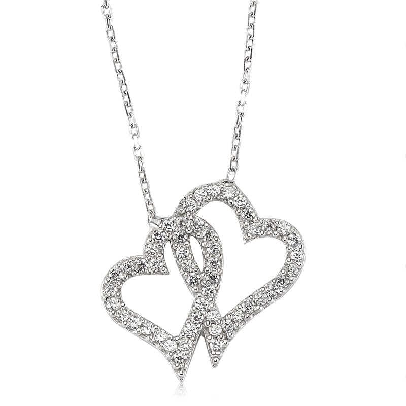 Gümüş İki Kalp Bayan Kolye (PT2410013)