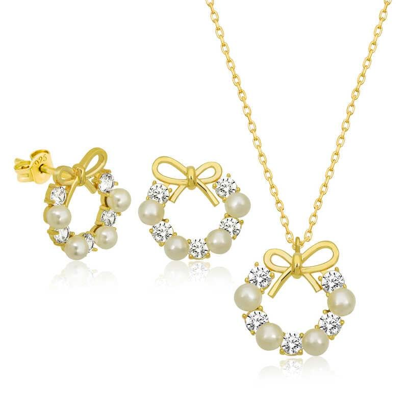 Zarif bir görünüm yakalamak isteyen tüm kadınlara hitap eden, modası hiç geçmeyecek gümüş inci taşlı set sizleri bekliyor. Gold kaplama gümüş, inci ve zirkon taşının göz alıcı ışıltısı ile etrafınıza parıltı saçmaya ne dersiniz... Sizin olduğu kadar sevdiklerinizin de keyifle takacağı inci set, aynı zamanda sevginizi paylaşabileceğiniz en güzel hediyelerden biri olacaktır... 925 ayar gümüşten imal edilmiştir. Gümüş üzerine gold kaplama yapılmıştır. Gold kaplama yapılan ürünler parlaklığını uzun süre muhafaza eder, oksitlenmesi gecikir. Üzerinde bulunan beyaz taşlar zirkon, inci ise kültür incisidir. Ürünlerimizin tamamı el emeği ile üretilmiştir. Gümüş ve değerli taşlar nedeniyle ürün ağırlığında ± %10 sapma olabilmektedir.