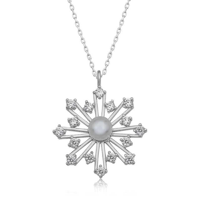 Gümüş İncili Kar Tanesi Kadın Kolye
