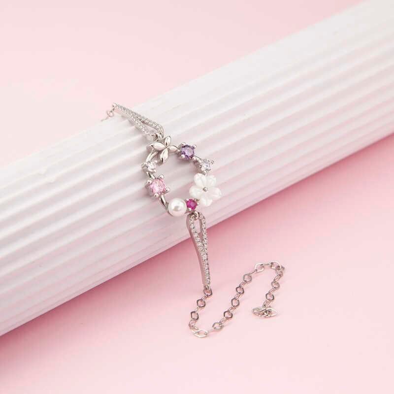 Gümüş Kalp Manolya Çiçeği Kelebek Kadın Bileklik