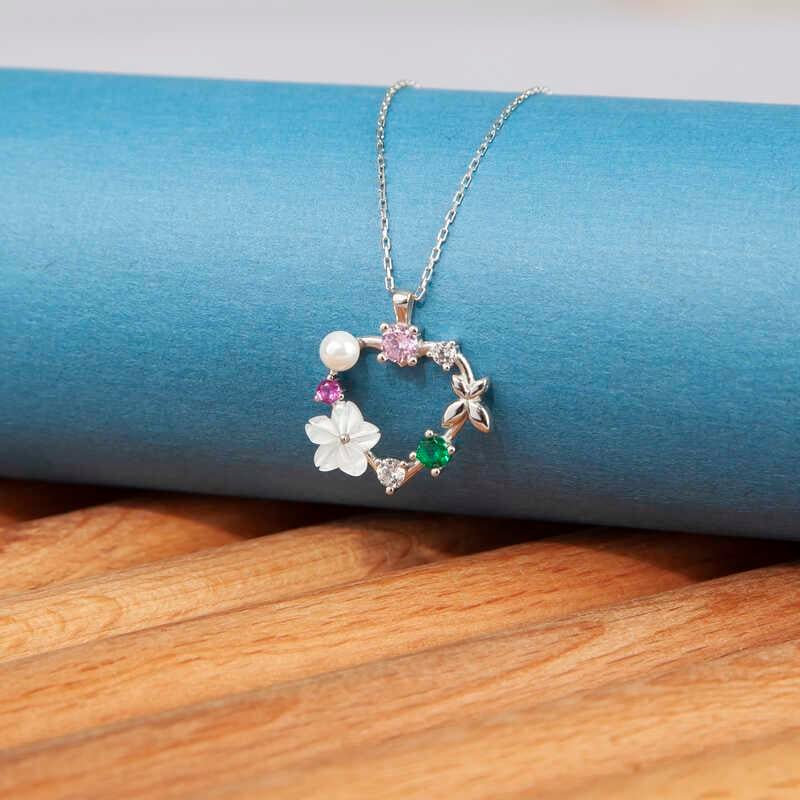 Gümüş Kalp Manolya Çiçeği Kelebek Kadın Kolye (PT11003824)