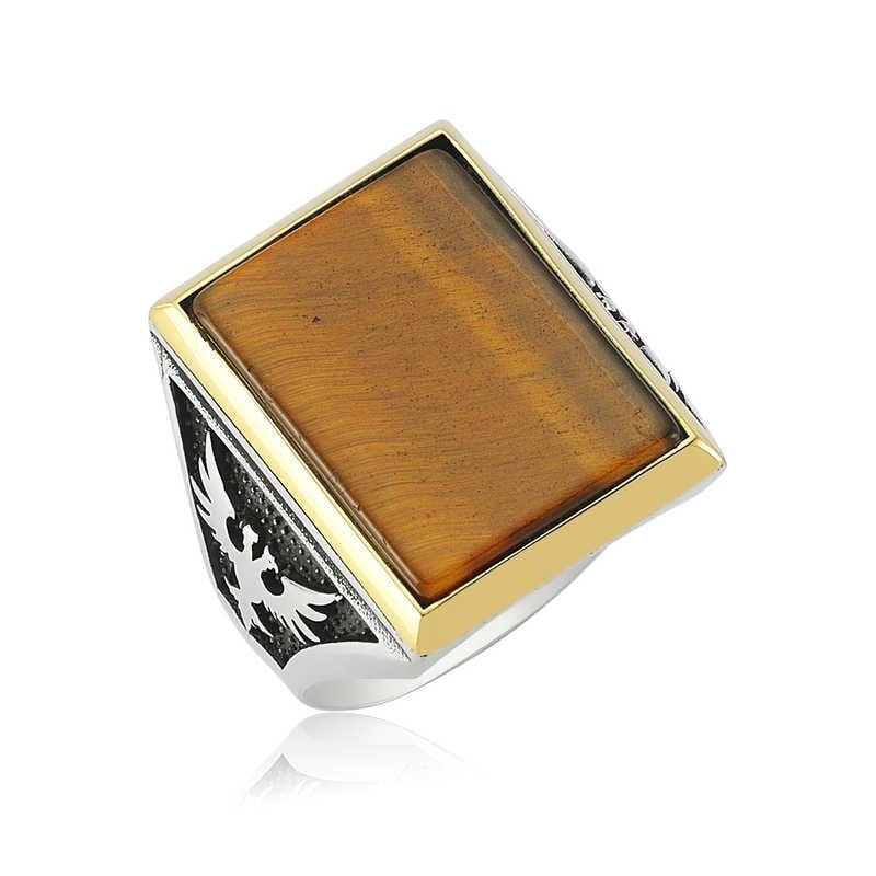 Kaplan gözü, Kristal Kuvars’ın bir alt türü olan Kalsedon grubuna bağlı bir değerli taştır. Adını, kaplanın gözlerine benzeyen kendine özgü renk tonlarından alır. Altınımsı ya da bal rengi olarak tanımlanan çizgisel tonları vardır. Yanardöner ve ipeğimsi görünüşü kaplan gözünü eşsiz kılan özelliklerinden biridir. “Sevgililerin taşı” olarak da tanımlanan kaplan gözü, duygulara hitap eden bir taştır. Değerli taşlar arasında, “koruyucu” özelliği ile en çok öne çıkanlardan biridir. Kullananın hareketlerine veya ruhsal durumuna göre renk değiştirmesi de bilinen özelliklerinden biridir. Bu şık yüzüğü; kendinize yada sevdiklerinize doğum gününde, babalar gününde yada özel günlerde tercih edebilirsiniz. Bu şık yüzük 925 ayar gümüşten imal edilmiştir. Gümüş üzerine oksit kaplama yapılmıştır. Oksit kaplama yapılan yüzükler parlaklığını uzun süre muhafaza eder. Tüm erkek yüzüklerde olduğu gibi gümüş kaplan gözü erkek yüzük de el emeği ile üretilmiştir. Gümüş ve değerli taşlar nedeniyle ürün ağırlığında ± %10 sapma olabilmektedir.