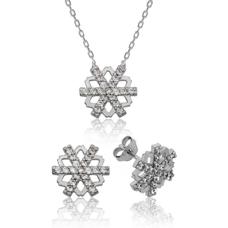 Kadınların ışıltısı, berraklığı kar tanesine benzetilip özel olarak tasarlanmıştır. Kar tanelerinin her birinin bayanlar gibi eşsiz ve ayrı kıymette olması onları özel kılan bir diğer özelliktir. Asilliği her dönemde dikkat çekmeyi başarmıştır. Bunun yanında insanların tıpkı kar taneleri gibi birbirlerine zarar vermeden de mutlu bir şekilde yaşayabileceklerini sembolize etmektedir. Bu şık set; doğum günü hediyesi, sevgililer günü hediyesi veya annelere hediye olarak özel günlerde tercih edilebilecek mükemmel bir seçenektir. Kar Tanesi Bayan Set, 925 ayar gümüşten imal edilmiştir. Gümüş üzerine rodyum kaplama yapılmıştır. Rodyum kaplama yapılan ürünler parlaklığını uzun süre muhafaza eder, oksitlenmesi gecikir. Üzerinde bulunan taşlar zirkondur. Zincir boyu ortalama 45 cm"dir. Tüm gümüş bayan setlerinde olduğu gibi bu gümüş kar tanesi bayan set de tamamı el emeği ile üretilmiştir. Gümüş ve değerli taşlar nedeniyle belirtilen ortalama ürün ağırlığında ± %10 sapma olabilmektedir.