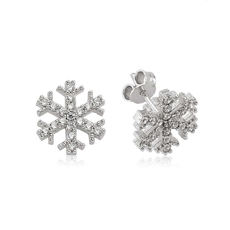 Bu özel tasarıma sahip kar tanesi bayan küpe modeli 925 ayar gümüşten imal edilmiştir. Bir çok kar kristal çeşidi olmasına rağmen, kar tanelerinin kristal yapıları birbirinin tıpa tıp aynısı değildir, her bir kar tanesi eşsizdir ve bir benzeri yoktur. Sevdiklerine eşsiz bir hediye vermek isteyen kişiler için, zirkon taşlarla süslenmiş bu kar tanesi bayan küpe modeli mükemmel anlamlar yüklü kaçırılmayacak bir hediye fırsatıdır. Bu kar tanesi küpe tasarımının üzerine rodyum kaplama yapılmıştır. Rodyum kaplama yapılan gümüş bayan küpe modelleri parlaklığını uzun süre muhafaza eder, oksitlenmesi gecikir. Gümüş küpenin üzerinde bulunan beyaz taşlar zirkondur. Tüm gümüş kar tanesi küpe modellerinde olduğu gibi gümüş kar tanesi bayan küpe modeli de tamamen el emeği ile üretilmiştir. Gümüş ve değerli taşlar nedeniyle belirtilen ortalama ürün ağırlığında ± %10 sapma olabilmektedir.Ort. Ağırlık: 1.00 gr.