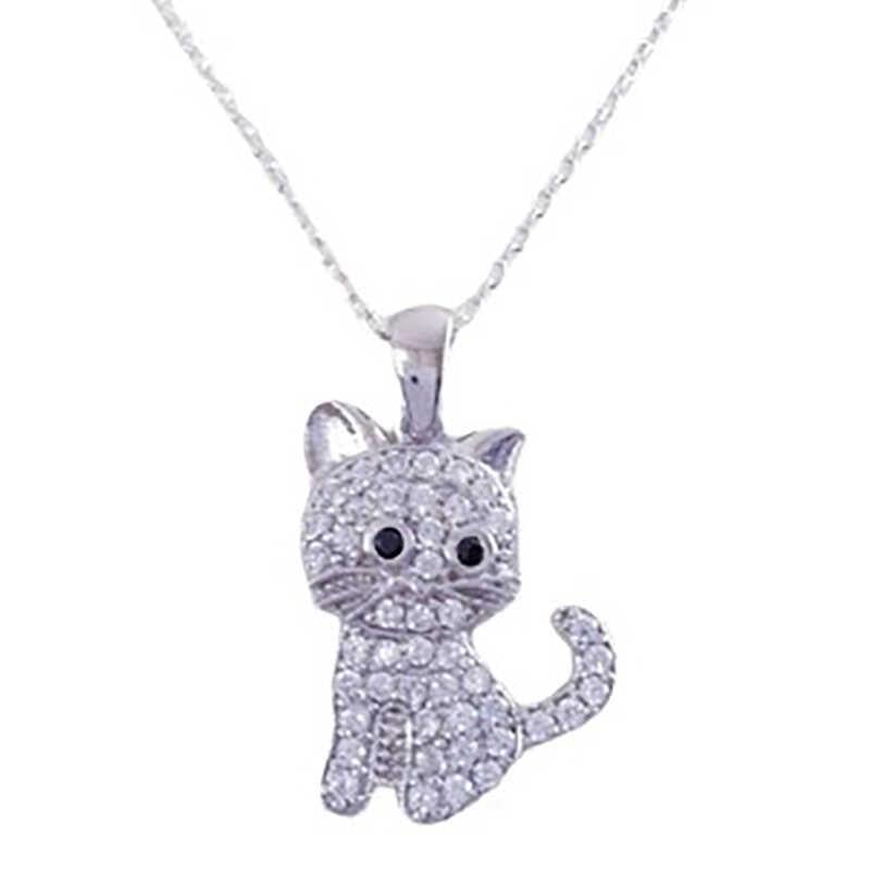 Evlerimizin sevimli neşe kaynağı kediler, temiz olmalarının yanı sıra masumiyetin simgesidir. Asil ve mantıklı bir kişiliğe, mükemmel sezgilere ve akılcı bir duyarlılığa sahiptirler. Özel günlerin en tercih edilen hediye seçeneklerinden olan gümüş takılar, sevdiklerini mutlu etmek ve onlara her an yanlarında taşıyabilecekleri bir hediye vermek isteyenler için tasarlandı. Masumiyetin simgesi olan kedi figürlü gümüş kolye modelini kız kardeşinize, sevgilinize ya da arkadaşlarınıza armağan edebilirsiniz. Zirkon taşlı kedi kadın kolye modeli 925 ayar gümüşten imal edilmiştir. Gümüş üzerine rodyum kaplama yapılmıştır. Rodyum kaplama yapılan gümüş kedi kolye modelleri parlaklığını uzun süre muhafaza eder ve oksitlenmesi gecikir. Kolye üzerinde bulunan tüm taşlar zirkondur. Gümüş olan zincir boyu ortalama 45 cm\"dir. Gümüş kadın kedi kolye diğer tüm gümüş kadın kolye modellerinde olduğu gibi el emeği ile üretilmiştir. Gümüş ve değerli taşlar nedeniyle belirtilen ortalama ürün ağırlığında ± %10 sapma olabilmektedir.