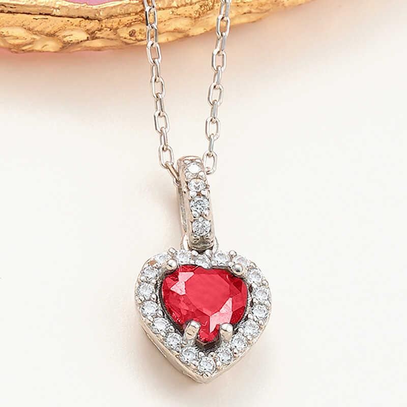 Gümüş Kırmızı Taşlı Kalpli Kadın Kolye