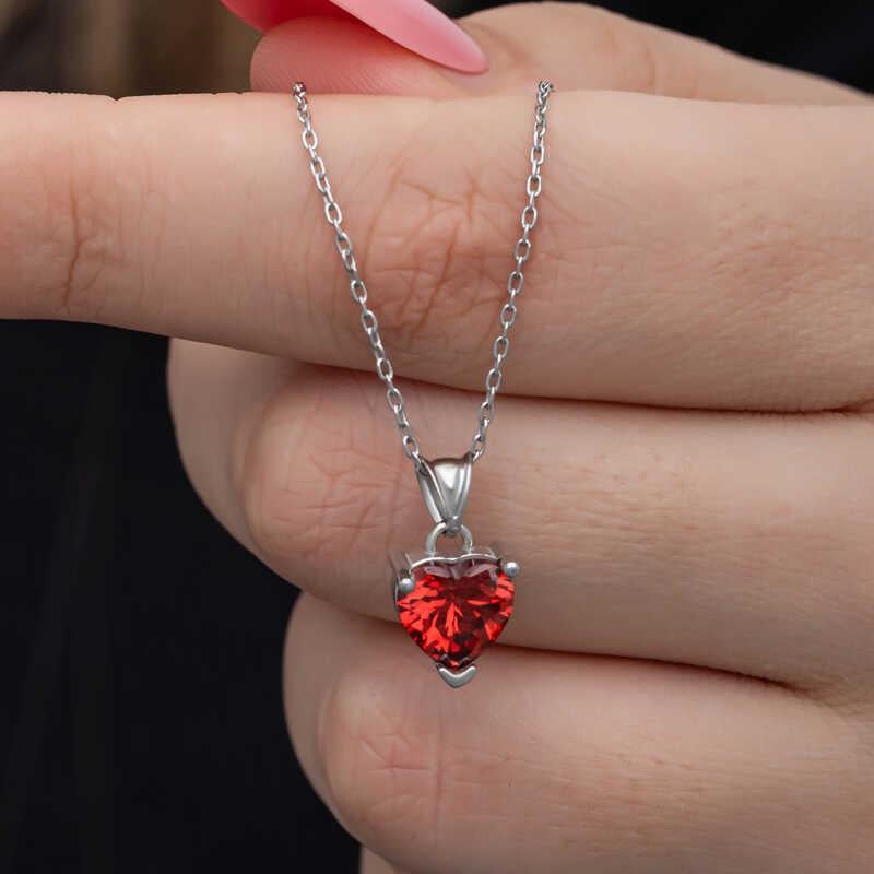 Gümüş Kırmızı Taşlı Kalpli Kadın Kolye