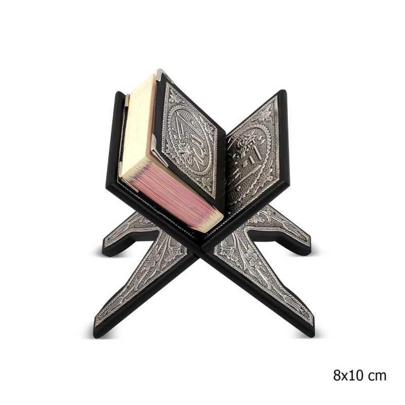 Usta ellerin maharetiyle şık bir görselliğe getirilmiş olan ahşap üzerine gümüş işlemeli rahlemiz sizlere en güzel görünüm ve tasarımla sunulmuştur. Ahşap Rahle ve Kuran-ı Kerim 925 ayar gümüş işlemedir.