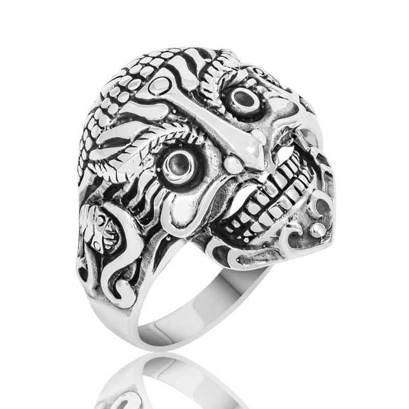 Kuru kafanın gizem ve ölüm anlamı vardır. Gizemli görünmeyi sevenler için kuru kafa yüzük modelleri harika takı şeçeneklerinden biridir. Kuru kafa erkek yüzük 925 ayar gümüşten imal edilmiştir. Gümüş üzerine oksit kaplama yapılmıştır. Oksit kaplama yapılan gümüş erkek yüzükleri otantik bir görünüme sahip olur. Diğer gümüş yüzüklerde olduğu gibi gümüş kuru kafa erkek yüzük modeli de tamamen el emeği ile üretilmiştir. Gümüş ve değerli taşlar nedeniyle belirtilen ortalama ürün ağırlığında ± %10 sapma olabilmektedir.