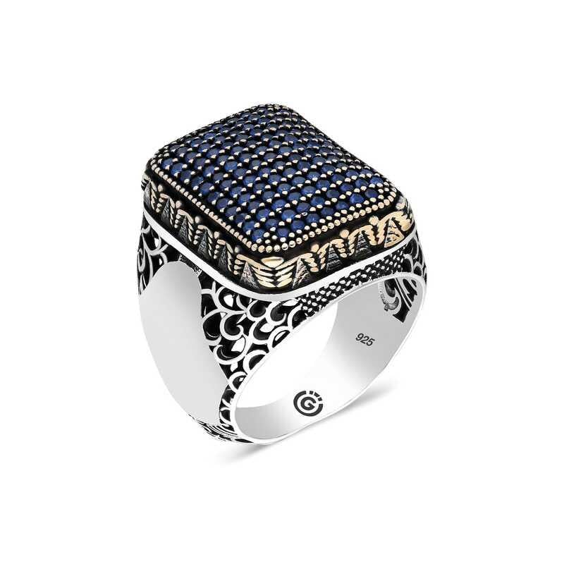 Gümüş Lacivert Zirkon Taşlı Kare Erkek Yüzük