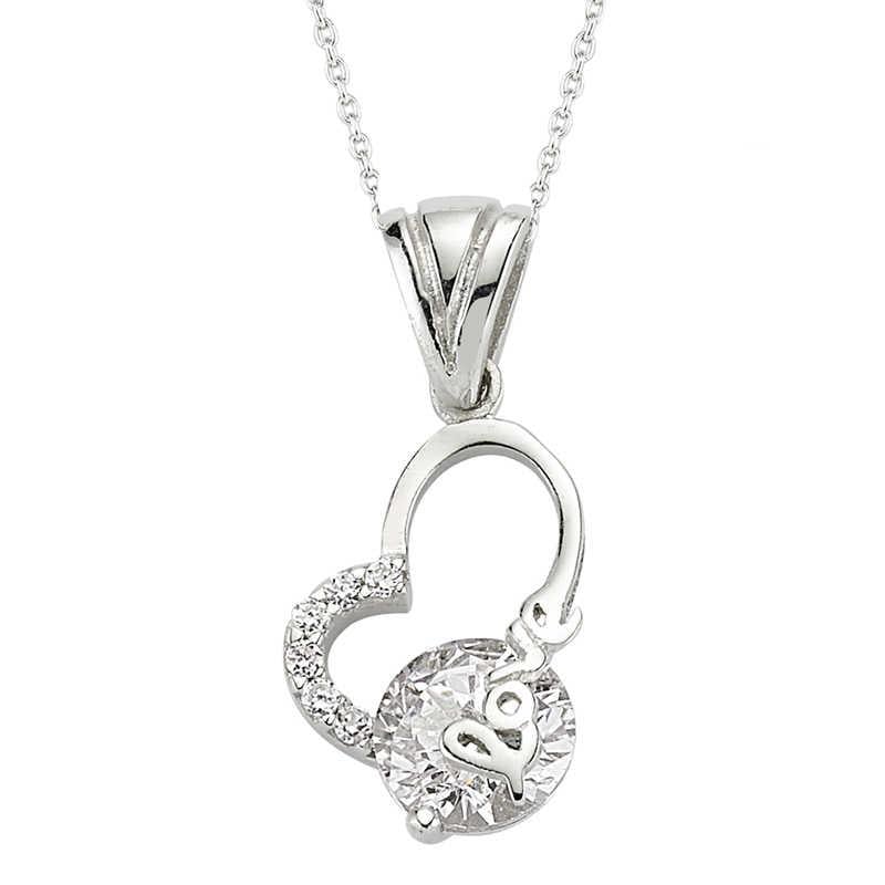 Zirkon taşlarla süslenmiş tek taş üzeri love yazılı bayan kalp kolye modeli 925 ayar gümüşten imal edilmiştir. Gümüş kolye üzerine rodyum kaplama yapılmıştır. Rodyum kaplama yapılan gümüş bayan kalpli kolye modelleri parlaklığını uzun süre muhafaza eder ve oksitlenmesi gecikir. Bu özel kolye tasarımı sevdiklerinize sevildiğini gösterecek anlamlı ve ışıl ışıl bir hediye olacaktır. Love yazısının altında bulunan tek büyük taş ve diğer minik taşlar zirkondur. Kolye ile gelecek zincir boyu ortalama 45 cm\"dir. Gümüş bayan kolye modellerinin tamamı el emeği ile üretilmiştir. Gümüş ve değerli taşlar nedeniyle belirilen ortalama ürün ağırlığında ± %10 sapma olabilmektedir.