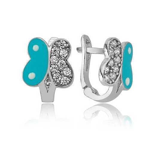 Gümüş Mavi Kelebek Çocuk Küpesi