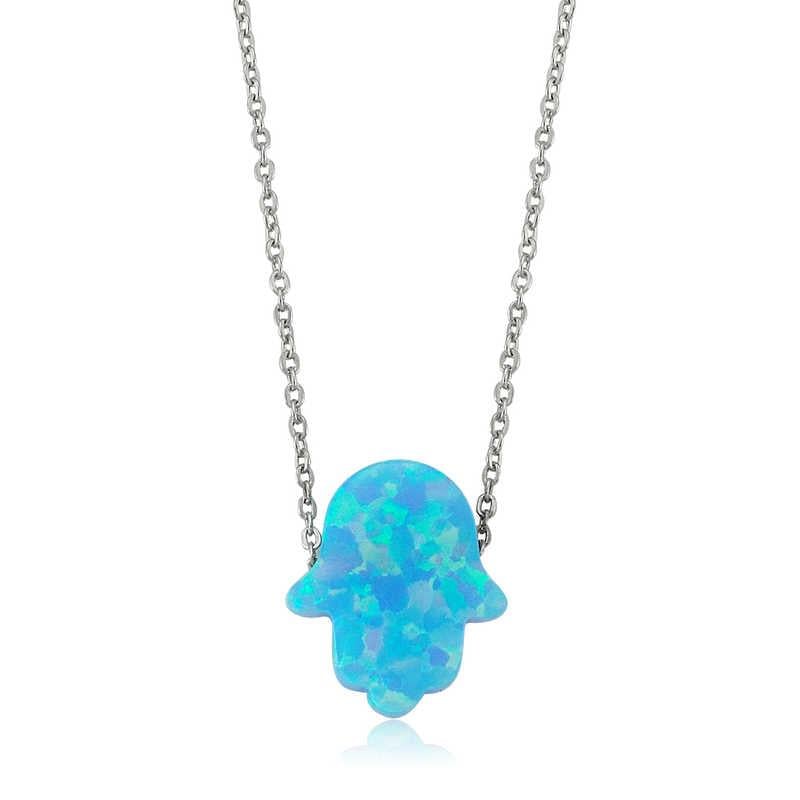 Gümüş Mavi Opal Fatma Eli Bayan Kolye