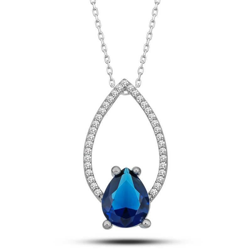 Gümüş Mavi Taşlı Damla Kadın Kolye