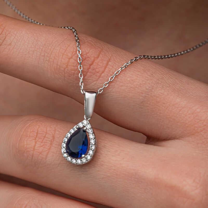 Gümüş Mavi Taşlı Damla Kadın Kolye